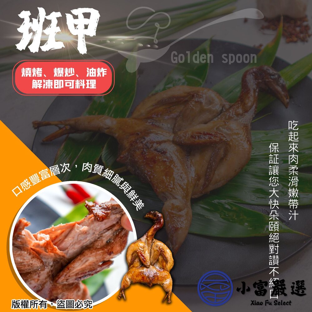 班甲,有[台灣春雞]之美名,亦可稱為[香檳鳥],即是我們俗稱的鵪鶉。其肉質軟嫩☘️比雞肉肉質更加鮮嫩😭😭😭