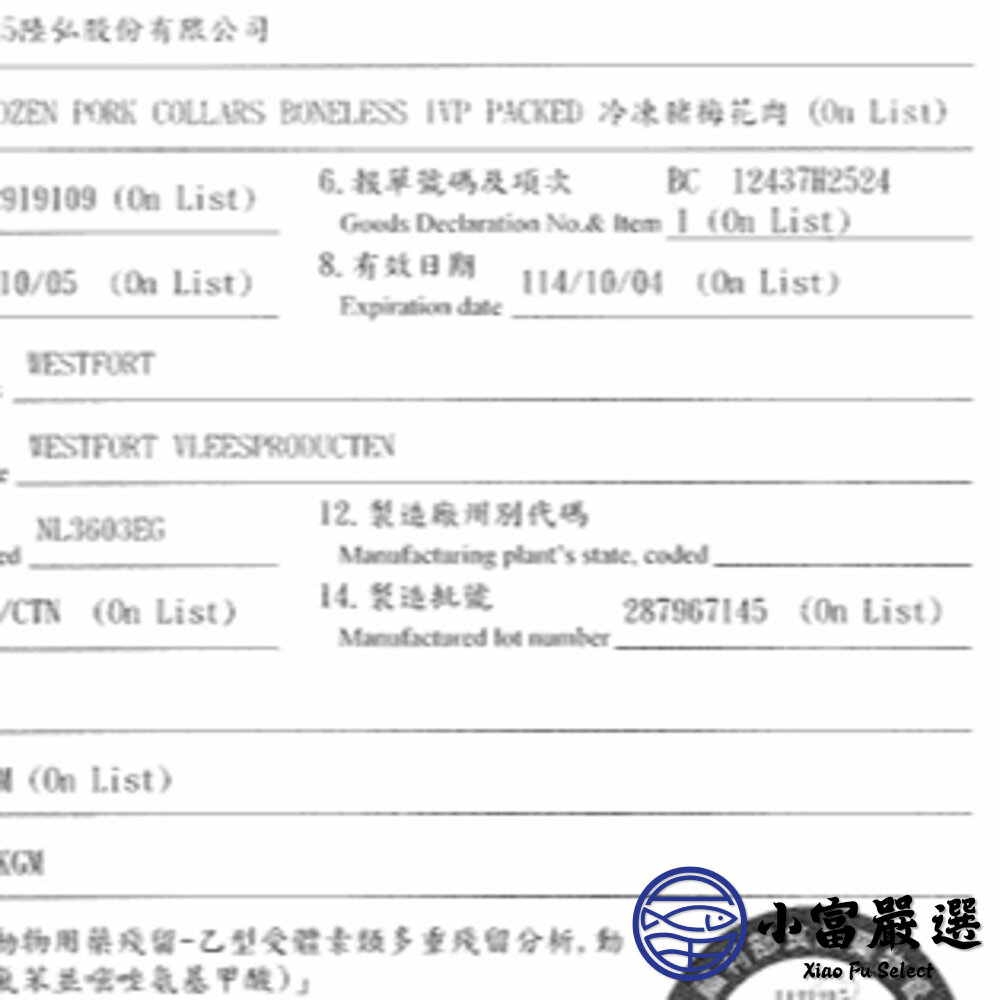 商品名稱:0000松坂豬 品牌原裝真空 原裝箱出售 (淨重9.9kg/箱)